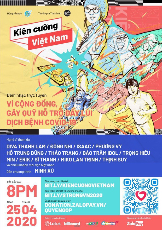 Đại nhạc hội trực tuyến nhằm gây quỹ hỗ trợ đẩy lùi dịch bệnh Coid-19 được livestream biểu diễn tại nhà quy tụ sự xuất hiện của nhiều nghệ sĩ lừng danh như Diva Thanh Lam, Đông Nhi, Isaac, Phương Vy, Hồ Trung Dũng, Thảo Trang, Bảo Trâm Idol, Trọng Hiếu, Min, Erik, Sĩ Thanh, Miko Lan Trinh, Thịnh Suy và nhiều khách mời đặc biệt khác như Hoa hậu Ngọc Hân, Á hậu Hoàng Thuỳ, ca sĩ Phan Mạnh Quỳnh, MC Phương Mai, MC Minh Xù...